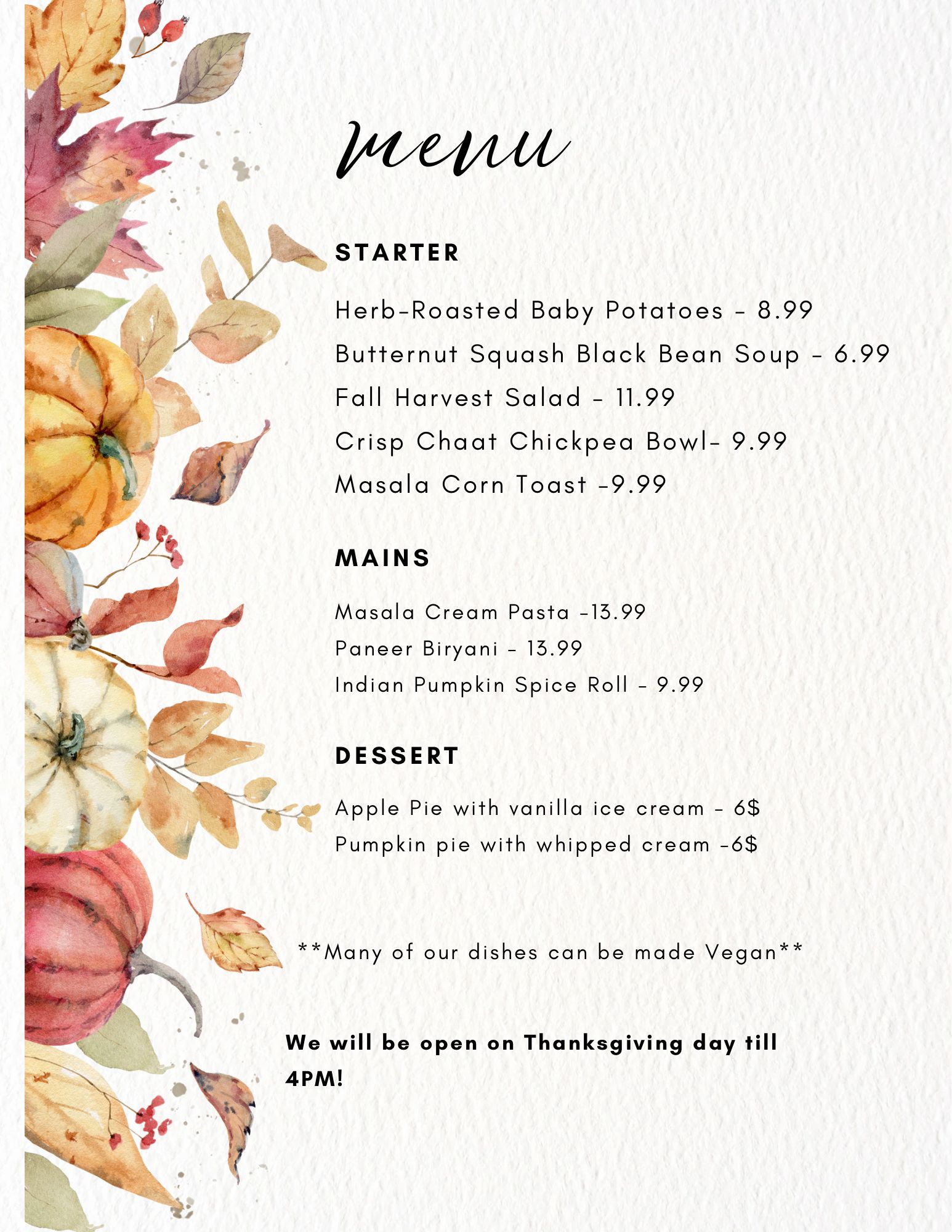 Welcome to our Menu! You’ll love our all-vegetarian dishes full of global flavors. Explore our tasty options, and don’t forget to try our coffee and tea—whether it’s a strong espresso or a chai, we’ve got you covered!